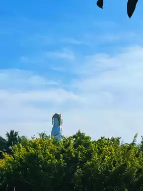 On the southernmost coastline of China stands a towering 108-meter white Guanyin statue. This is Nanshan, known as the "Sea and Sky Buddha Kingdom," a famous Buddhist sacred site since the Tang Dynasty when Master Jianzhen stopped here on his journey to Japan. The Nanshan Sea Guanyin statue, completed in 2005, holds different ritual objects in each of its three faces and is the tallest sea Guanyin statue in the world to date.