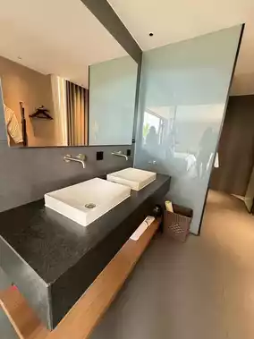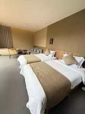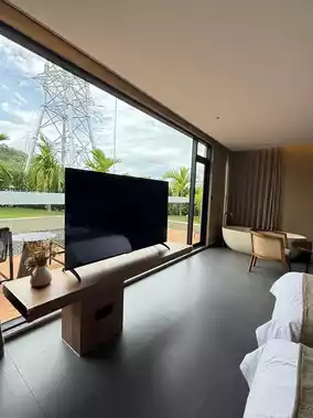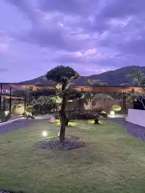Lying by the large floor-to-ceiling window in the room, watching the coconut trees sway in the wind, listening to birdsong and cicadas, it felt like a deep embrace with nature. The sound of wind chimes in the courtyard relaxed the soul... Mountains, stone walls, and greenery—every step was a healing scene...