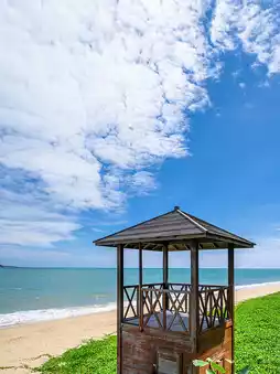 The park is located near Sanya and is considered a symbol of romance for lovers. It's best to visit in the morning to avoid the crowds, explore the pebble beach, and take photos by the boulders.