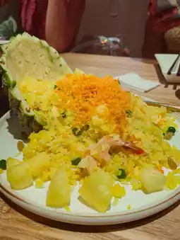We went to this restaurant twice last year and loved it so much that we were eager to have another meal there during our stay in Yalong Bay (亚龙湾). Our favourite is the sweet and sour fish 🐟 which was crispy, in sweet and sour sauce with chunks of bell peppers, pineapple and onion. The noodles with sesame sauce, peanuts and coriander was a yummy discovery this time. We devoured it all as soon as it made its way on our table 🙈 The veggies and the shrimp cake were a tad oily, but still brought their flavours to our taste buds 😁 The pineapple fried rice was also delicious.