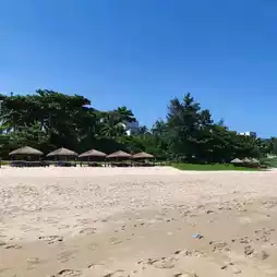 Sanya Yalong Bay is located 25 km from the nearest airport (Sanya Phoenix International Airport). Yalong Bay is probably the most expensive holiday destination on Hainan island. The 7.5 km long coastline, curved in the shape of a crescent, is covered with fine white sand. Clean water in sunny weather looks beautiful. The bottom is visible at a depth of 10-12 m, which, combined with the proximity of coral reefs, creates excellent conditions for diving and snorkeling. Unlike Dadonhai beach, where the passage to the sea is closed after 19.00 due to dangerous storm currents, you can swim here at any time of the day. I prefer to go to Yalong bay only for a day, spend the whole day at the beach and then go back to Dadonghai bay. In the evening it's a bit boring over there, nothing much to do.