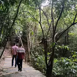 There are so many steps but water slide down, was a lot of fun. The tourist village had many restaurants and snack shops as well as places to get souviners like stamps and fans. Walking through the rainforest felt a lot like hiking back in my home country.