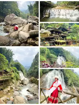 Turn the car down a little bit into the valley below Sapa town, you will find Cat Cat village. The way down passes through various souvenir shops until you find a beautiful waterfall. The nature is like being in a movie.
