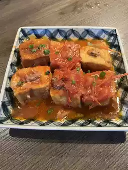 The restaurant is decorated in earth tones alternating with the green of the ornamental plants. The food is delicious and not greasy in the style of Vietnamese food. The rice is soft and sticky like Doi rice or Japanese rice. The taste is bland than in our country, but it is delicious. The price is not expensive. We ordered lemongrass baked chicken, stir-fried vegetables, and tofu with tomato sauce. It is delicious and well-rounded.