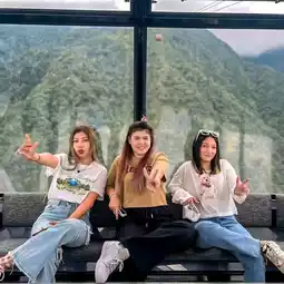 Point 3. When you arrive at the cable car station, continue to the top of the mountain. But the way down is not included in the package. We recommend walking down to enjoy the view (it is a staircase down about 600 steps with seats to rest along the way). Or if you do not want to walk You have to buy an additional ticket to sit down at the 2nd point