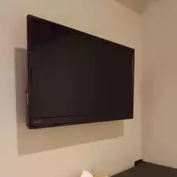 There is a TV on the upper right of the desk.