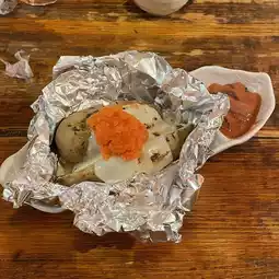 Extra-large zangi and buttered potatoes to eat with shiokara.