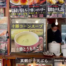 The Sapporo Snow Festival is a seasonal winter event in Hokkaido. It is held in a vast area, centered around Odori Park, but the gourmet corner there was unexpectedly limited due to the effects of COVID-19. The corner was located right under the TV tower, which is also a symbol of Hokkaido. Specialties from various areas of Hokkaido were on display, and because the area was limited, it was actually difficult to choose. It was especially cold, so warm foods like Tokachi corn soup were very helpful.