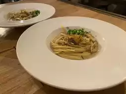 The sea urchin pasta was served in half. 🤍