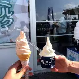 There is a shop on the hill, and the Shiroi Koibito ice cream is made with milk from a farm in Hokkaido, so it was very rich and delicious!