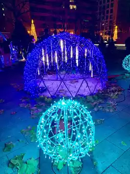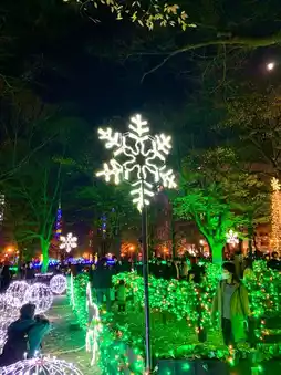The illuminations included mirror balls, lit-up trees, and snowflake illuminations that are typical of Sapporo.
