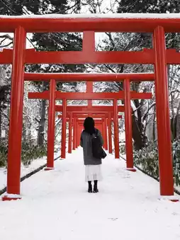 Fushimi Inari Shrine in Sapporo was built in 1884. Although it is far smaller in visibility and architectural scale than Fushimi Inari in Kyoto, the red torii gate with snow scenery that stretches all the way in winter is unusually beautiful.