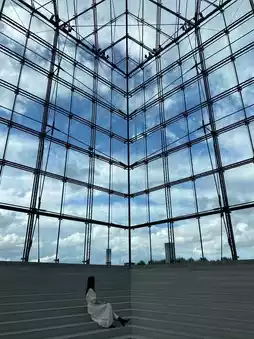 The park also has a triangular object similar to the Louvre Museum, and you can even go inside it!