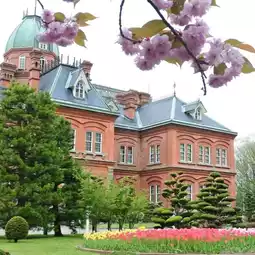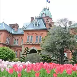 This building was built using approximately 2.5 million red bricks, and you can feel its history and style from the curved glass and American neo-baroque style architecture. The Former Hokkaido Government Office Building is famous for its rich natural beauty, with cherry blossoms and lilacs in the spring, lush greenery in the summer, and red leaves in the fall. You can enjoy the different beauty of the four seasons. In addition, there are tulips and other flowers and a pond in the front yard of the building.