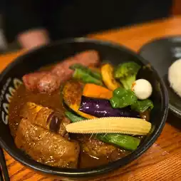JapanTravel Soup Curry Restaurant ⭐️Soup Curry SAMA⭐️ Sapporo Odori Store is a soup curry restaurant located throughout Sapporo. It is famous for its delicious hamburger steak soup curry, and the main store was so popular that it opened branches in many places. The Odori Tanuki Koji store, which is popular with tourists, is popular. The interior is clean, and the food comes out pretty quickly after ordering, so the waiting time is shorter than you think.