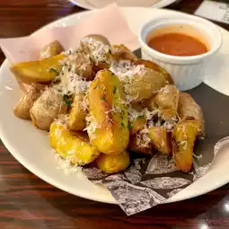 Inca no Mezame potatoes, which are as sweet as chestnuts or sweet potatoes, are made into crispy fries. To finish, cheese is grated right in front of you. The combination of the sweetness of the potatoes and the saltiness of the cheese and salt is delicious.