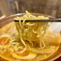 The noodles are the familiar Sapporo ramen noodles made by Nishiyama Seimen, with curly egg noodles. They are chewy and easy to swallow, and the soup clings to the noodles well.
