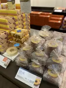 The shop is full of desserts. The packaging is exquisite. I bought a Baumkuchen, scallop fruit, and of course, a puff!
