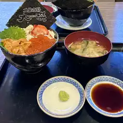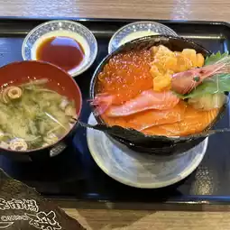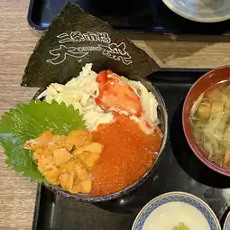 The ingredients used at Nijo Market & Oiso are sourced from Hokkaido. The ingredients such as Shakotan sea urchin, crab meat, and northern clams are all very fresh. Even the white rice in the seafood rice bowl is distinct and chewy, and paired with fresh sashimi, it is unforgettable once you try it.