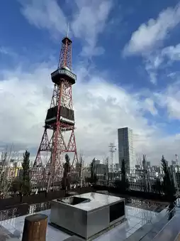 From the canvas rooftop on the rooftop, you can see the Sapporo TV Tower up close!