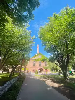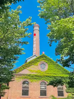 The Sapporo Beer Museum campus is shaded by green trees in the summer, making it a perfect place for taking photos!