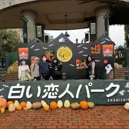 Come to Sapporo… Don't miss this place, Shiroi Koibito Park. Inside there is a chocolate factory decorated in European architecture, along with an English-style flower garden. If you come here, you will definitely get at least a hundred photos. Today, we came in a Halloween theme. The highlight is the pumpkin car with a purple cat. After taking photos, we went to try drinks and ice cream.