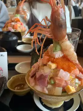 The extra-large seafood bowl is full of fresh Hokkaido seafood, and is delicious and filling.