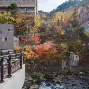 📝 Gyokuen-kyo Bridge is a bridge located in the center of Jozankei Onsen Village, crossing the Toyohira River and providing beautiful scenery in harmony with the surrounding natural landscape. It is a famous spot for many tourists, especially in the fall season, when you can enjoy the harmonious scenery with the autumn leaves. There is also a walking path and park around the bridge, making it a great place to enjoy a walk and relax.