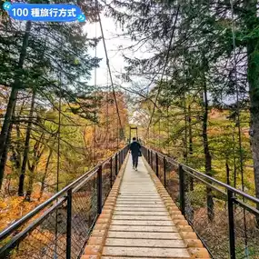 #定山溪温泉 Less than an hour's drive from Sapporo, this is a famous spot for viewing maple leaves and taking a hot spring bath. The autumn colors dye the entire mountain valley red and yellow, which is quite magnificent. It is most romantic to view the maple leaves on the Futami Gorge Red Bridge.