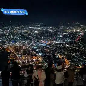 #函館山夜景 The night view of Mt. Hakodate, known as the million-dollar night view, can be seen by taking a cable car up the mountain. On the top of the mountain, you can overlook the entire Hakodate Bay, which is brightly lit and very beautiful.