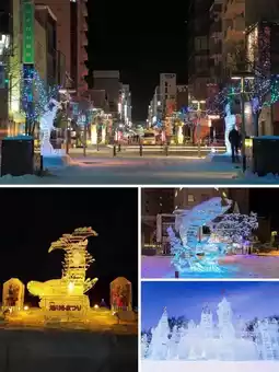 - **Sapporo Snow Festival**: This festival began in 1950 when local students built six snow sculptures in Odori Park. It has since evolved into a grand event featuring snowball fights and snow sculpture exhibitions, drawing 50,000 attendees in its first year. The Sapporo Snow Festival is not only Japan's most famous winter celebration but also one of the world's top three snow festivals, with 2.73 million visitors in 2019. The main venue at Odori Park showcases over 200 large snow sculptures and international competition entries, illuminated at night for a magical experience. The Susukino site focuses on ice sculptures, with events like ice sculpture lighting and ice bars.