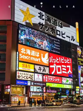 ➡️Susukino: In the center of Sapporo, the NIKKA sign is a must-see.