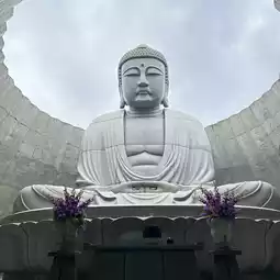 In the back, there is a large Buddha statue that is about the same size as the Great Buddha of Kamakura. It is also called the "Head Buddha" because its head pops out of the ceiling🪷