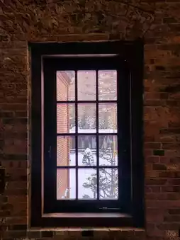 The red brick factory covered in snow is really pretty.
