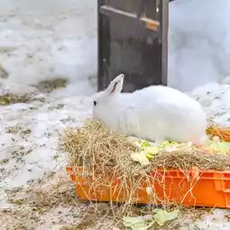 This is the area where the rabbits of Dosanko Forest are kept at the Children's Zoo at Sapporo's Maruyama Zoo in winter. Here you can see the Ezo snow hare, which mainly lives in Hokkaido. Since it's winter, we were able to see them covered in pure white, fluffy fur.