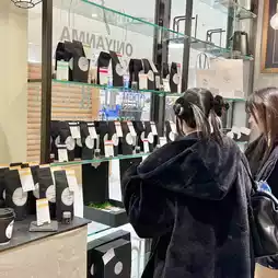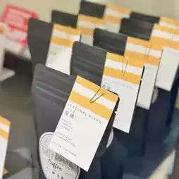 The cute coffee tools and coffee bean display cases in the store are impressive.
