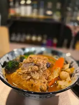 Located at the end of Tanukikoji 8-chome in Sapporo, Sapporo Local food Yakuzen Soup Curry ⭐️Ninja Tanuki⭐️ (薬膳スープカレー忍者 たぬき店) is a soup curry restaurant with a unique ninja theme. This relatively new establishment is a small restaurant on the second floor, offering fresh vegetables and high-quality dishes. Compared to other places, you can enjoy a slightly spicier soup curry here.