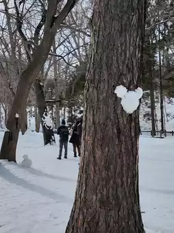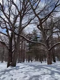 Take the subway to Maruyama Koen Station and walk into the park. The entire park is filled with giant trees. Despite the thick snow, there are still many locals walking or walking their dogs. Artists have created many snow art pieces on the trees, which are very impressive.