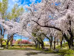The park is home to around 250 cherry trees, including Hokkaido's unique Ezo mountain cherry blossoms and Somei Yoshino cherry blossoms. The blooming season typically peaks in late April to early May, offering a relaxing atmosphere for cherry blossom viewing.