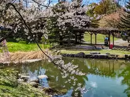 #Nakajima Park is a famous maple viewing spot in Sapporo city. In fact, there are also cherry blossoms to enjoy in spring. Ezoyama cherry blossoms, Somei Yoshino cherry blossoms, Yaezakura, etc. are planted around the pond and in the green space. Although the scale and number of cherry blossoms are not as spectacular as maple leaves, surrounded by high-rise buildings and set against the beautiful Toheikan, Nakajima Park is also decorated with spring cherry romance.