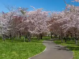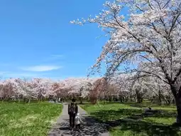 There is a secret cherry blossom viewing spot called "Toyohira River Sakura-no-Mori" in the riverside green space next to Sapporo IC and Kita-24jo Bridge. As the name suggests, it is a place where cherry blossoms are in full bloom. There are more than 500 cherry trees planted along the green space along the river, ranging from the early-blooming Ezoyama cherry blossoms to the late-blooming Somei Yoshino cherry blossoms, extending the entire flowering period to a full month.