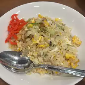 The medium-thick, curly noodles are well-mixed with the rich, deep-flavored soup. A delicious bowl until the last bite!
