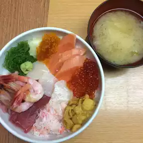 Fresh seafood galore! A local favorite for seafood rice bowls.