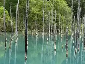 ๐ After lunch, visit Biei's 'Blue Pond' โ Drive along Patchwork Road
