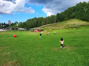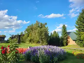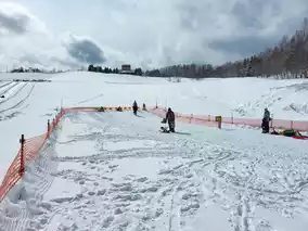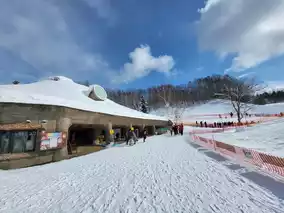 At the park entrance, there is a restaurant and a shop offering light meals and local Hokkaido cuisine. To the right of the entrance is a large slope, which in summer is adorned with seasonal flowers like lupines, lavender, and kochia, creating picturesque walking paths. In winter, it transforms into a beginner-friendly ski slope, ideal for children and novice skiers.