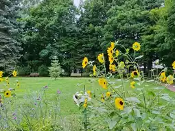 Filled with vibrant flowers, it features a train ride that kids love (paid)