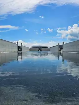 Architect Tadao Ando envisioned the sight of looking up at a Buddha statue in the depths of darkness in a stone cave. The gentle tunnel, water garden, and spatial design with light shining through the darkness create a moving introduction.