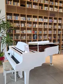 Relax at the Library Café: Surrounded by bookshelves, this is a relaxing space where you can enjoy sweets and coffee.