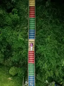 This is a beautiful park with European-style buildings and trees lining both sides. At night, the trees are illuminated, creating a Christmas atmosphere.
