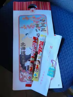 After the ceremony, children often receive “Chitose Ame” (longevity candy), symbolizing health and long life. These long red-and-white candies are packaged in bags decorated with auspicious motifs like cranes, turtles, and pine trees, making them a quintessential symbol of Shichi-Go-San.
